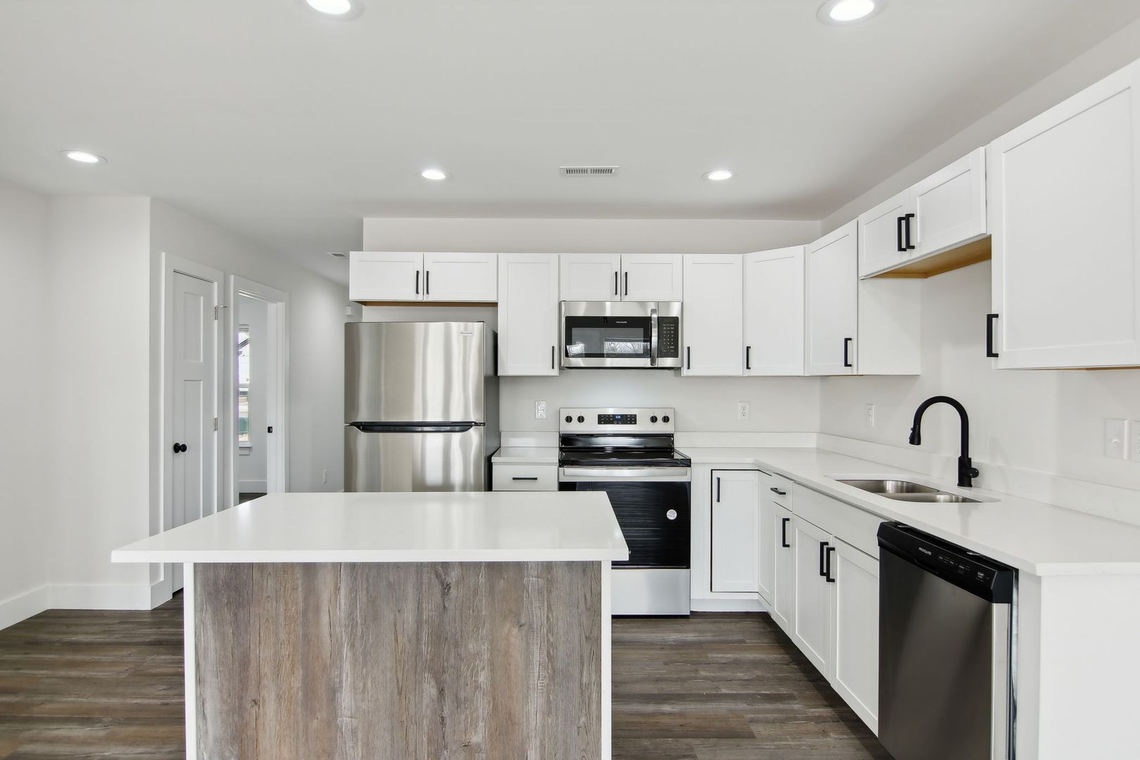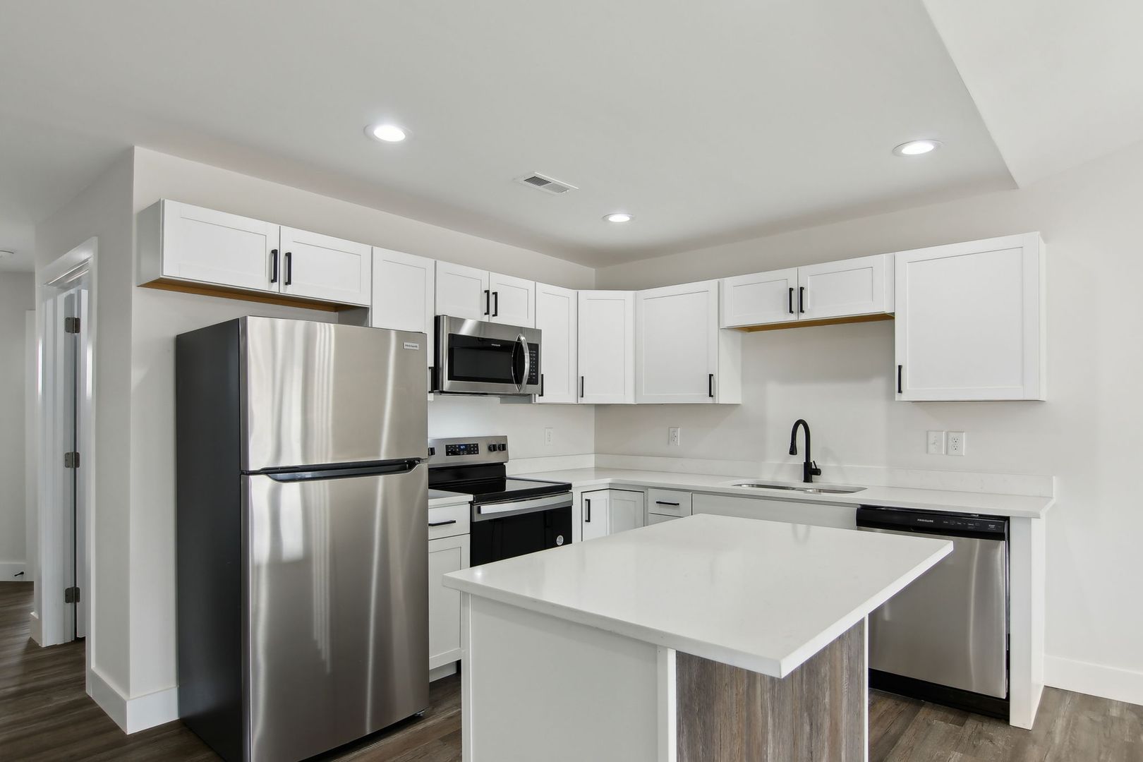 This 3 bedroom / 2 bath unit has contemporary design meets comfort and functionality. Enjoy the sophisticated touch of sleek matte black finishes paired with elegant quartz countertops. The kitchen is featured with expansive cabinet space, a pantry with built-in shelving, and brand-new appliances including a refrigerator, stove/range, microwave, and dishwasher. The master suite offers a serene retreat with a spacious walk-in closet for all your storage needs. Step outside and unwind on your private patio, perfect for hosting weekend barbecues or relaxing. Welcome home!