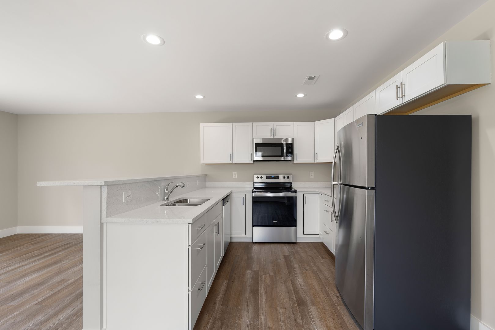 These are our limited 2-story townhomes - 3 Bedroom / 2.5 Bathroom + 1-car garage. Upon entering the home you will find it is lined all throughout with beautiful vinyl planks; no carpet. The spacious kitchen features beautiful quartz counter tops, brand-new stainless steel appliances (refrigerator, stove, microwave, dishwasher) and tons of cabinets for storage. Living/Dining room combo: open floor plan, has tons of natural light and neutral colors for the optimal modern home experience. The second story hosts all three bedrooms and your laundry area! The spacious master bedroom features a generous sized walk-in closet. Upon exiting the home, you will find a patio perfect for weekend barbecues. Neighborhood amenities include a playground area for kids and a gazebo hangout area.